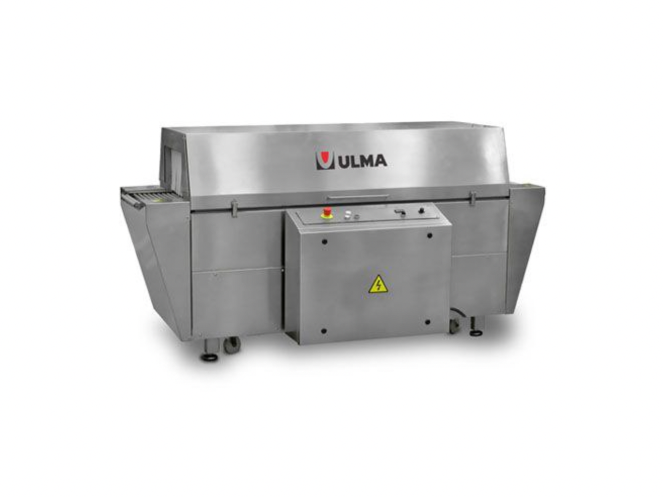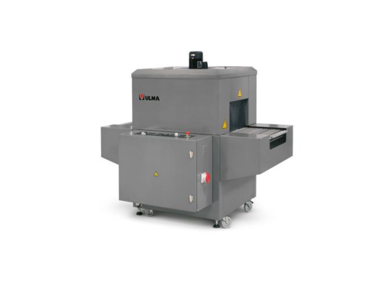 Термоусадочный тоннель с открывающейся крышкой. Предназначен для термоусадки полиолефиновой плёнки (упаковка на флоу-паке) горячим воздухом. Четыре усадочных станции с двумя воздушными потоками в каждой. Для линий с высокой производительностью.